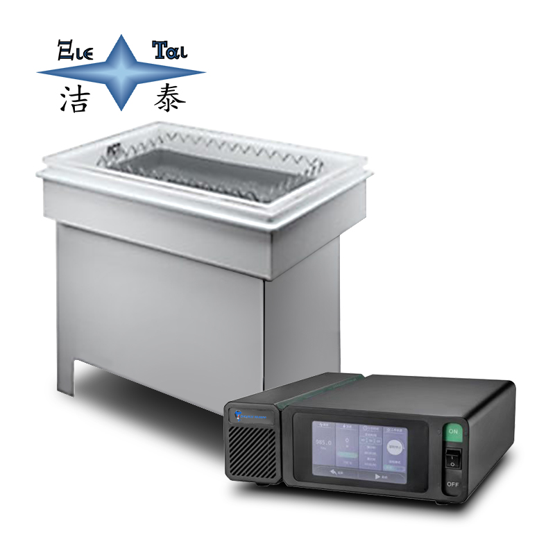 潔泰雙頻半導體兆聲波清洗機,采用原裝韓國高效能超聲波換能器,全電子式超聲波控制系統(分體式控制,內置式控制可選),可選擇調校超聲波功率大小,可連續長時間工作、內置式安全發熱系統,可調式溫度控制系統、安全及操作簡便,可按用戶實際需求來設計及制造,適合不同行業物件的清洗要求。