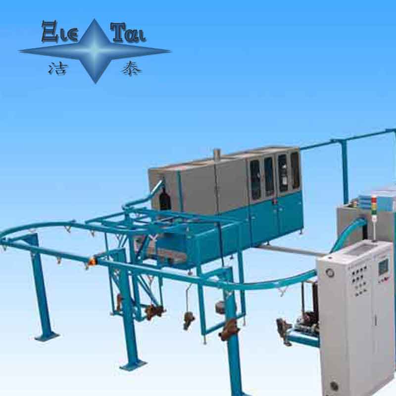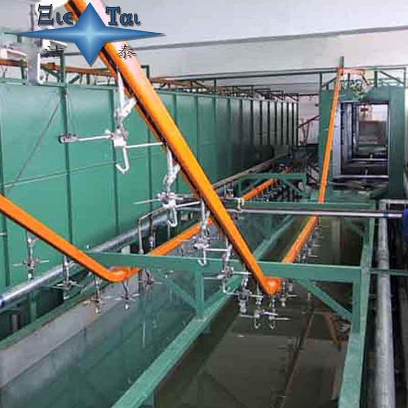懸掛鏈式飛輪輪轂超聲波、噴淋清洗烘干設備由懸掛輸送鏈條、驅(qū)動裝置、張緊裝置、超聲波清洗、噴淋清洗、過水槽、切水系統(tǒng)、烘干系統(tǒng)、管路系統(tǒng)、過濾系統(tǒng)、自動溫控裝置、總電氣控制、底盤和機架等部份組成.各槽體間加裝不銹鋼接水盤,避免汽車輪轂/飛輪在移動過程中將水滴落地面。