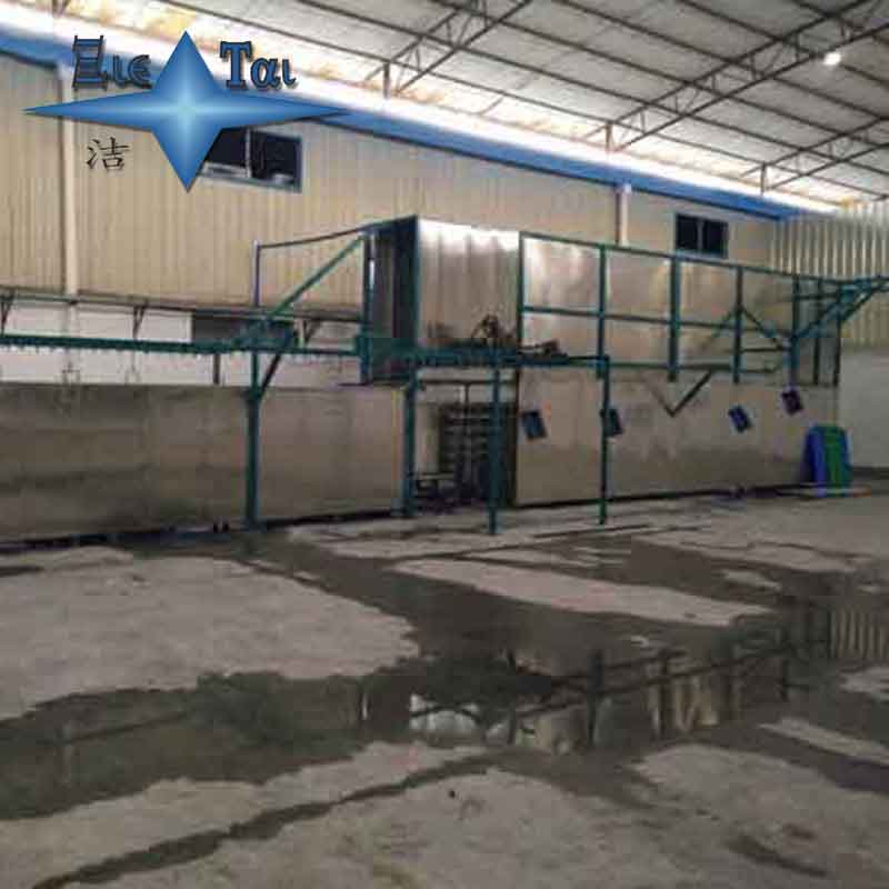 潔泰五金餐具用懸掛鏈式多槽超聲波清洗機,采用懸掛輸送鏈和專用掛具,懸掛輸送工件,設置超聲清洗、漂洗、噴淋、脫水、烘干等多道工序,變頻器無級調(diào)節(jié)懸掛鏈運行速度,適應多種工件不同需求的清洗節(jié)拍,可根據(jù)場地靈活布置各清洗工序,運行平穩(wěn),可靠性高,操作簡便,根據(jù)客戶不同的需求作非標設計。